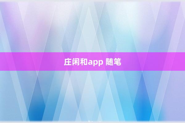 庄闲和app 随笔
